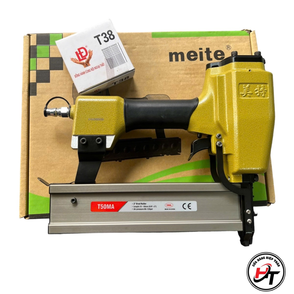 Súng bắn đinh gỗ T50 hay còn gọi là súng bắn đinh T50 , máy bắn đinh T50 , súng bắn đinh hơi là sản phẩm đến từ thương hiệu Meite , một trong những hãng nội địa nổi tiếng tại Trung Quốc, chuyên sản xuất và phân phối các loại súng dùng hơi, đặc biệt là súng bắn đinh khí nén.